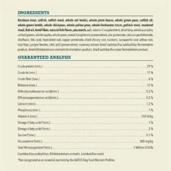 - This high protein, grain-free dog food recipe starts with fish and contains up to 60% high-quality animal ingredients and 40% fruit, vegetables and nutrients.