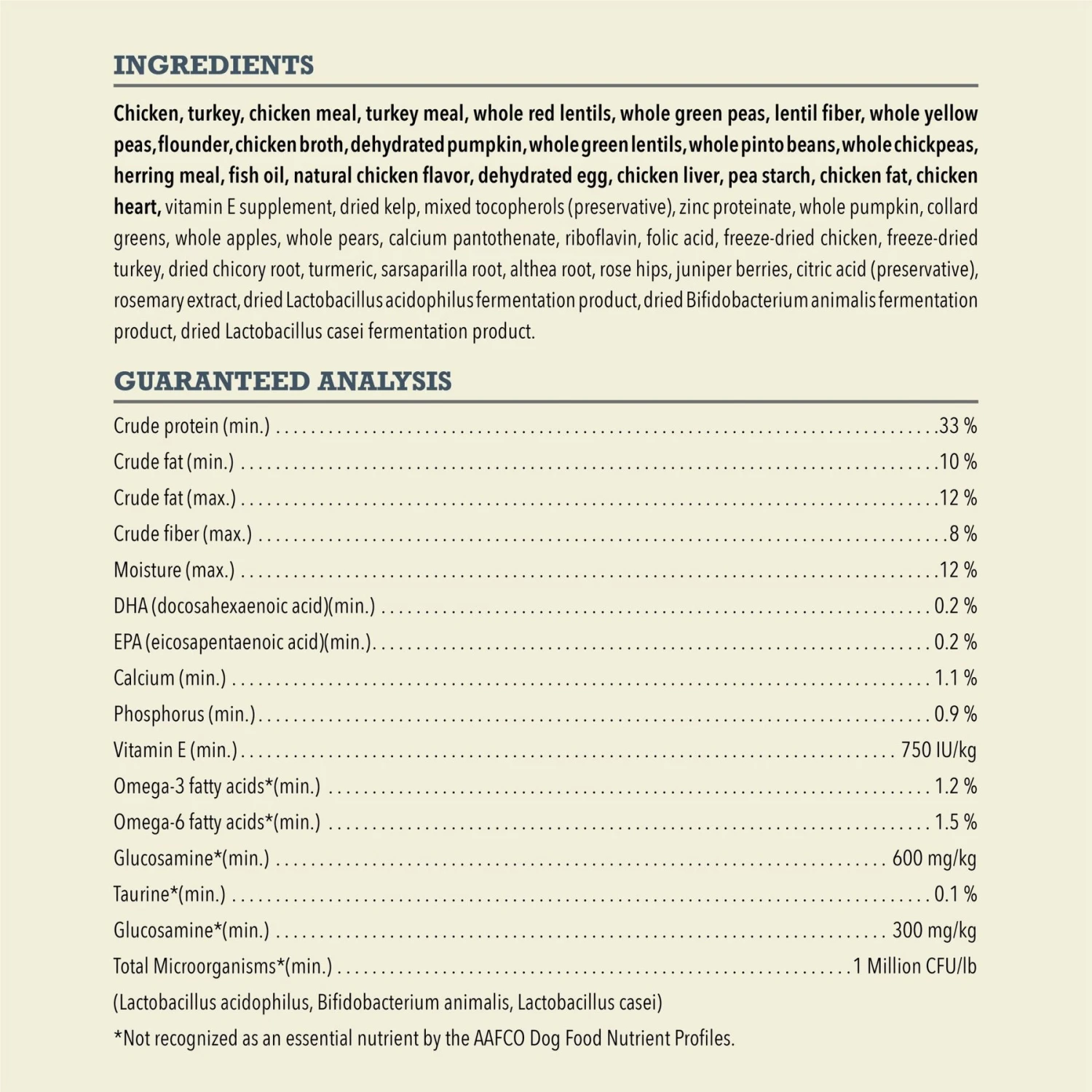 - This dry dog food starts with free-run chicken and turkey for the healthy protein your pup needs to thrive.