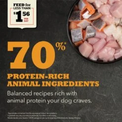 - Contains up to 70% high-quality animal ingredients and 30% wholesome fruits, vegetables and nutrients, plus added essential vitamins and minerals.