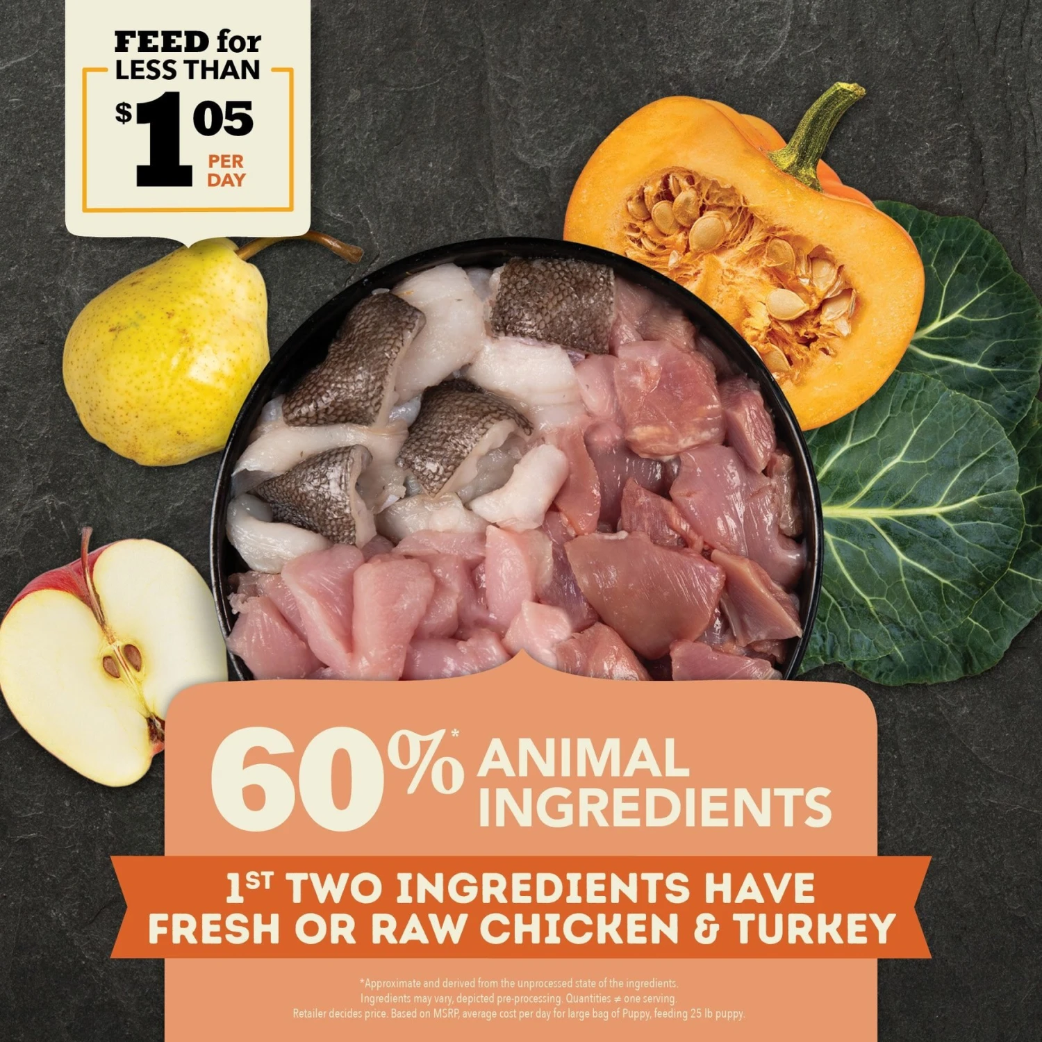 - Protein-rich animal ingredients provide the protein and fat your puppy needs for healthy growth and development.