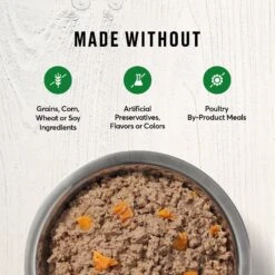 - Grain-free meal is ideal for dogs that can’t tolerate certain ingredients because it’s made with no corn, soy or wheat; packed in BPA non-intent cans for safety.