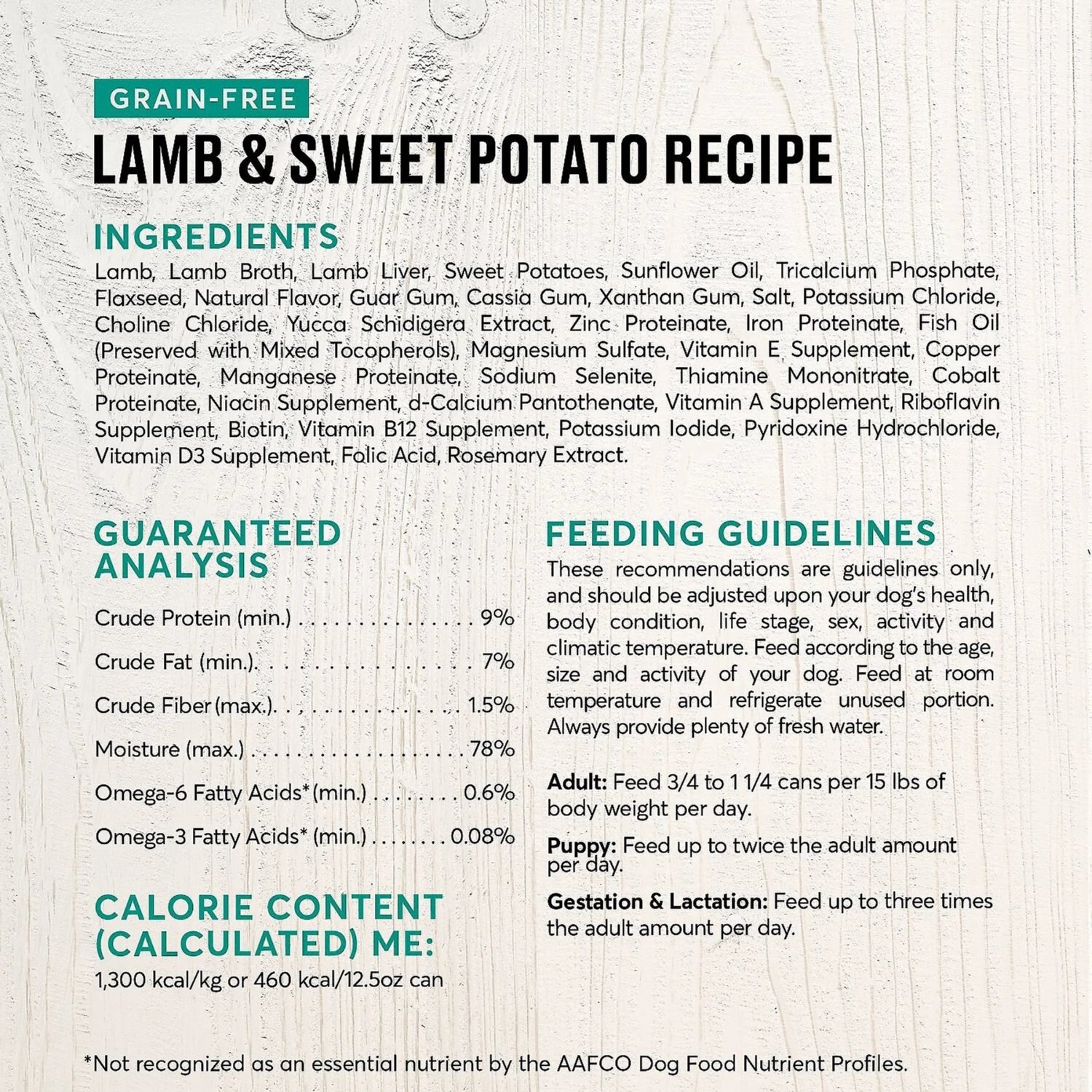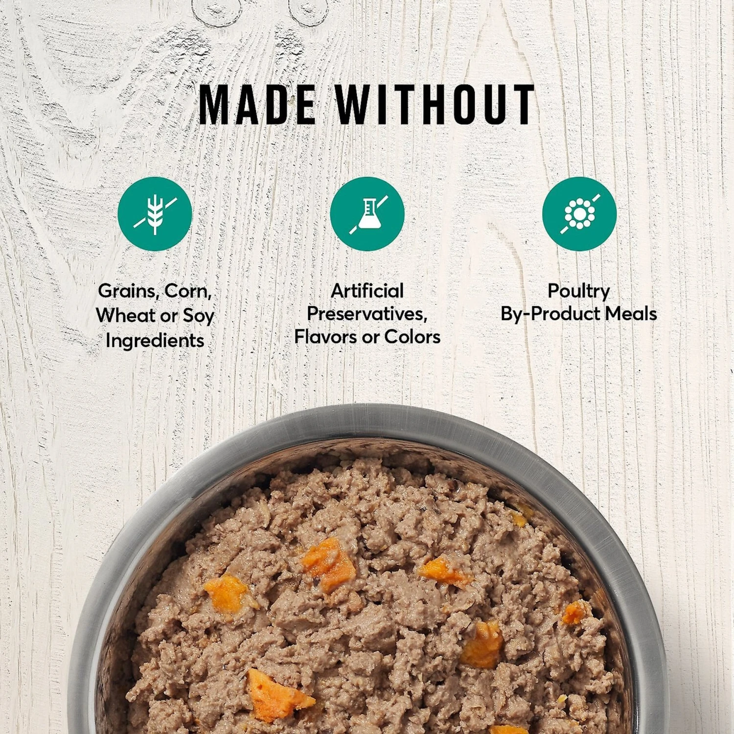 - Grain-free meal is ideal for dogs that can’t tolerate certain ingredients because it’s made with no corn, soy or wheat; packed in BPA non-intent cans for safety.