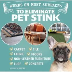 - Effective on any surface, indoors or outdoors––this spray works on carpet, tile, wood floors, litter boxes, grass and more.