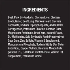 - With beef as the first ingredient, this classic loaf in sauce complements any dry food or stands alone as a tasty meal.