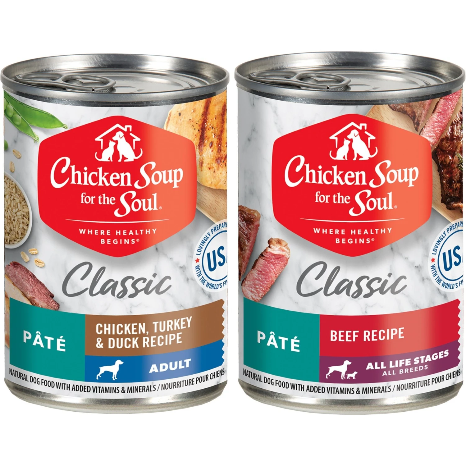 Be the first to review “Chicken Soup For The Soul Classic Adult Chicken, Turkey & Duck Recipe & Beef Pate Recipe Wet Dog Food, 13-oz Can, Case Of 12” Cancel reply