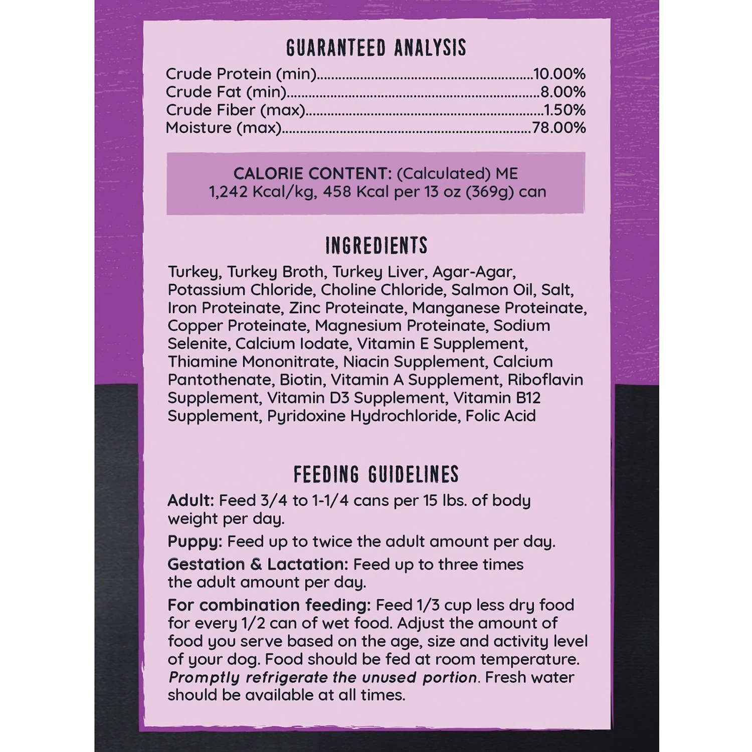- Real turkey is the first ingredient, and this tasty food is also packed with vitamins B12, D3 and E for optimal nutrition.