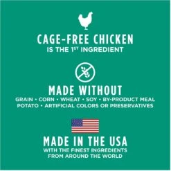 - Cage-free chicken is the first ingredient so it’s packed with animal protein to support the energy needed for growth and play.