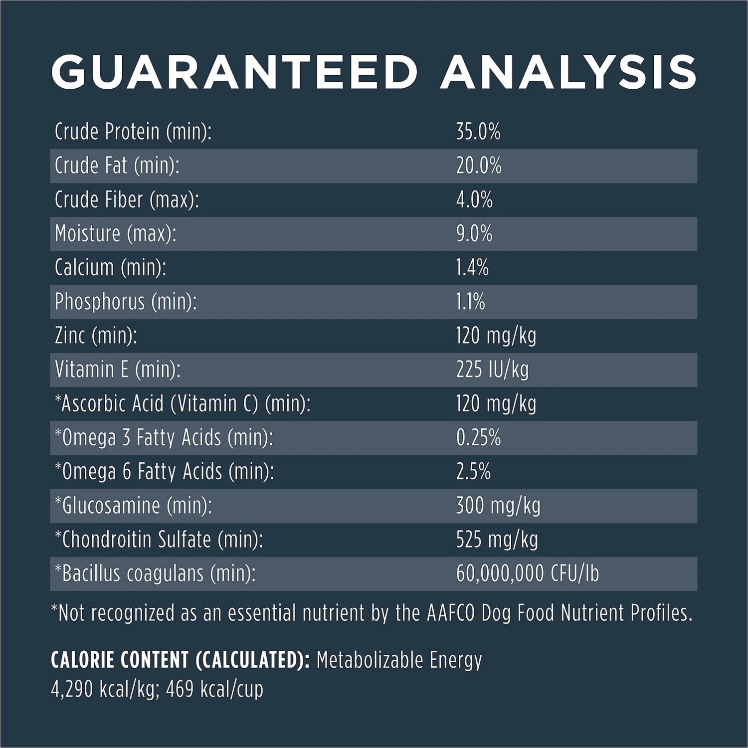 - Tailored nutrition with calcium and phosphorous for strong bones and teeth plus naturally occurring glucosamine and chondroitin for joint health.