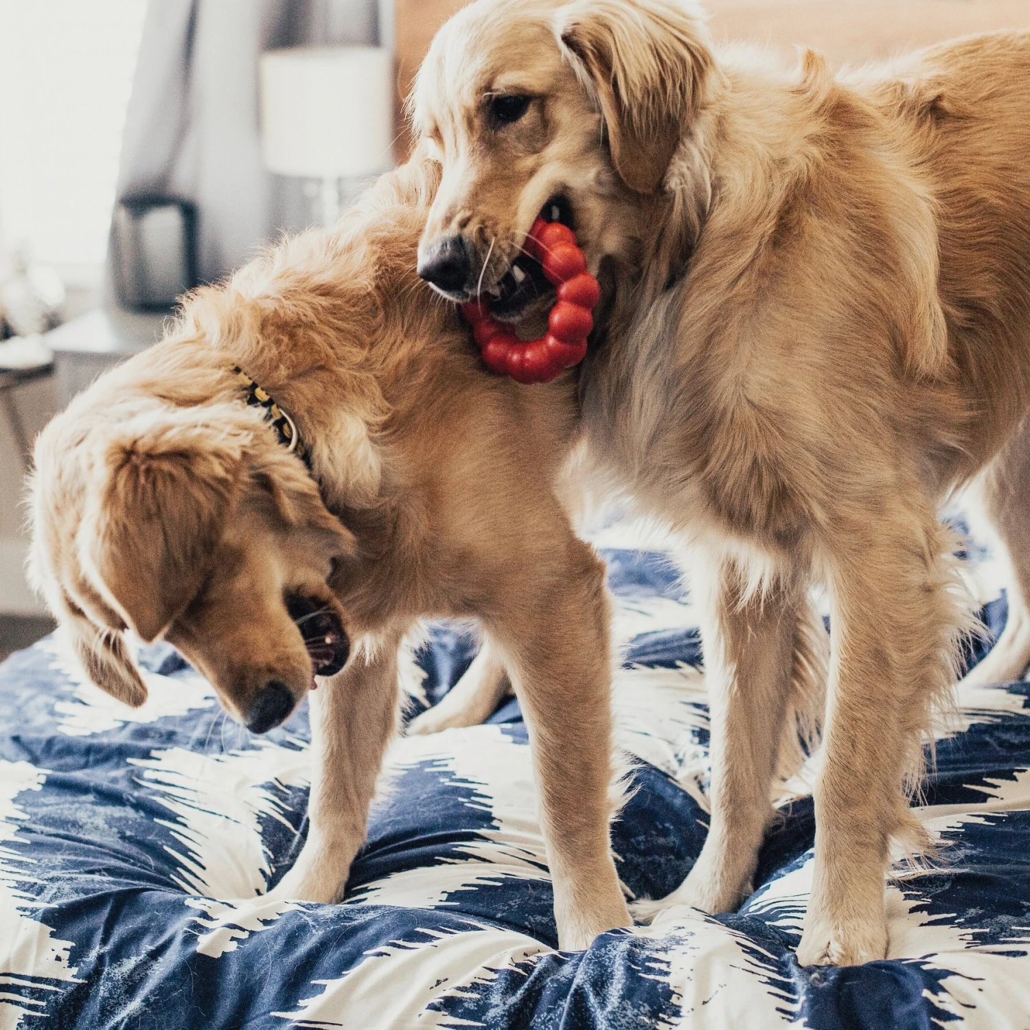 - The rubber toy is a great way to have more interactive fun with your pal—just flick it and let your furry best friend try and catch it.