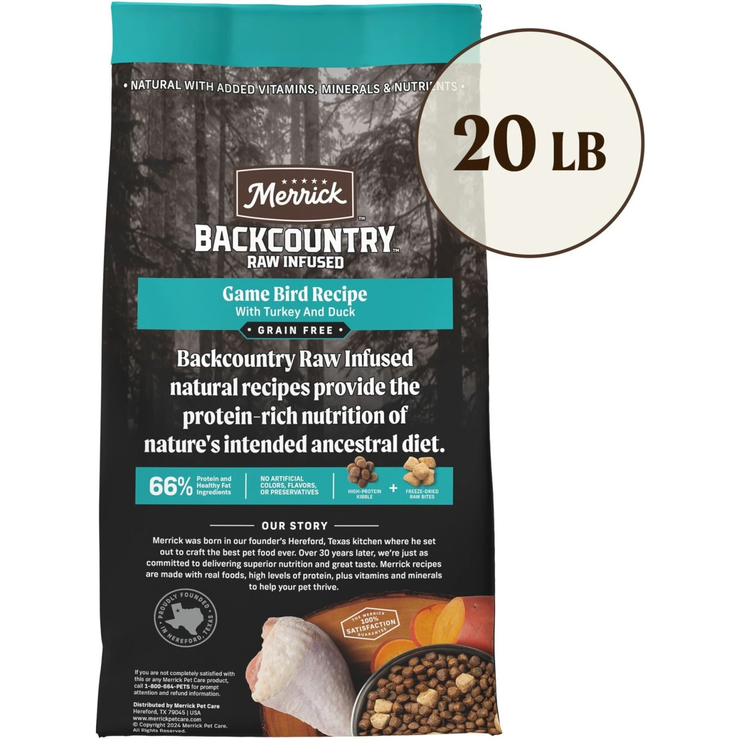 - This Merrick Backcountry recipe is specially formulated to help meet your adult dog’s unique dietary needs.