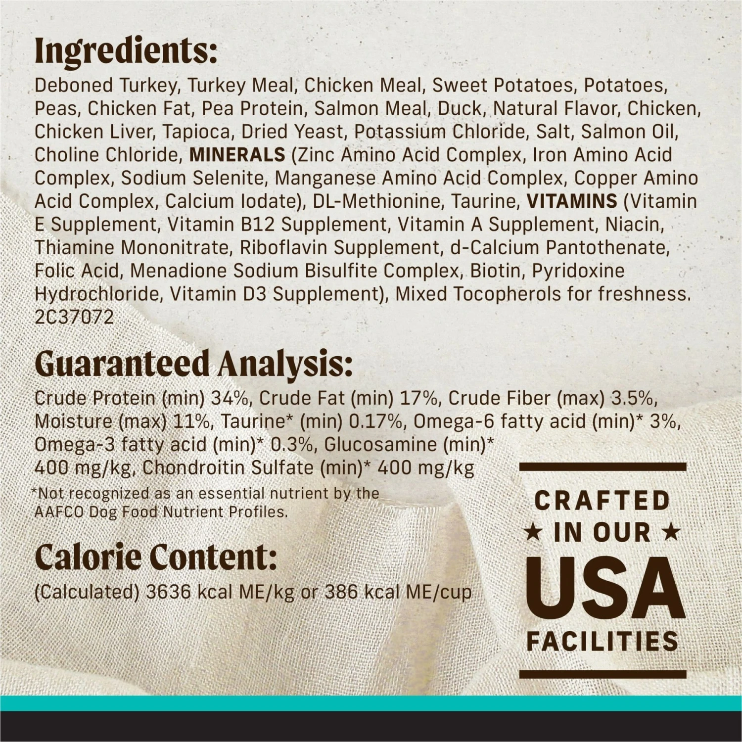 - Real, deboned turkey is the first ingredient in this recipe—it’s crafted with high levels of protein to help maintain healthy muscles and energy levels.