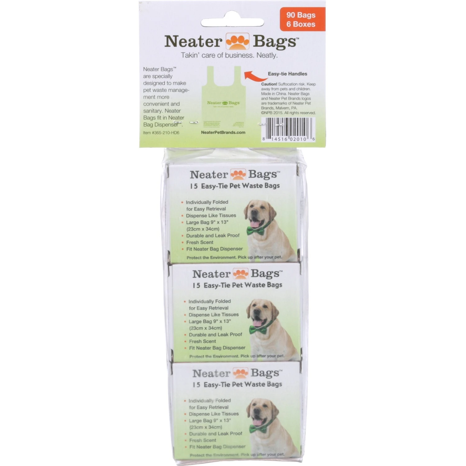 - Each box contains 15 bags and there are 6 boxes in a package for a total of 90 bags.