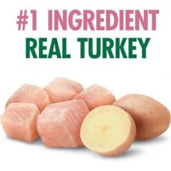 - Farm-raised turkey is the first ingredient in this delicious adult dog food.