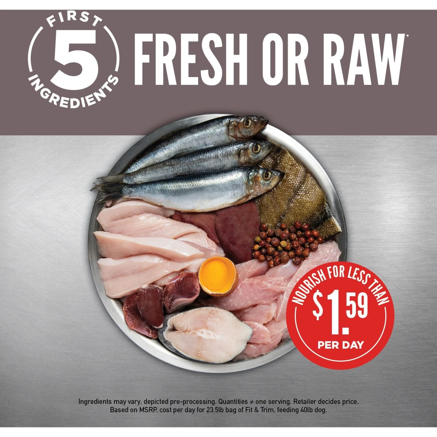- The first five ingredients of this high protein kibble are fresh or raw poultry and fish to provide a rich source of vitamins and minerals.