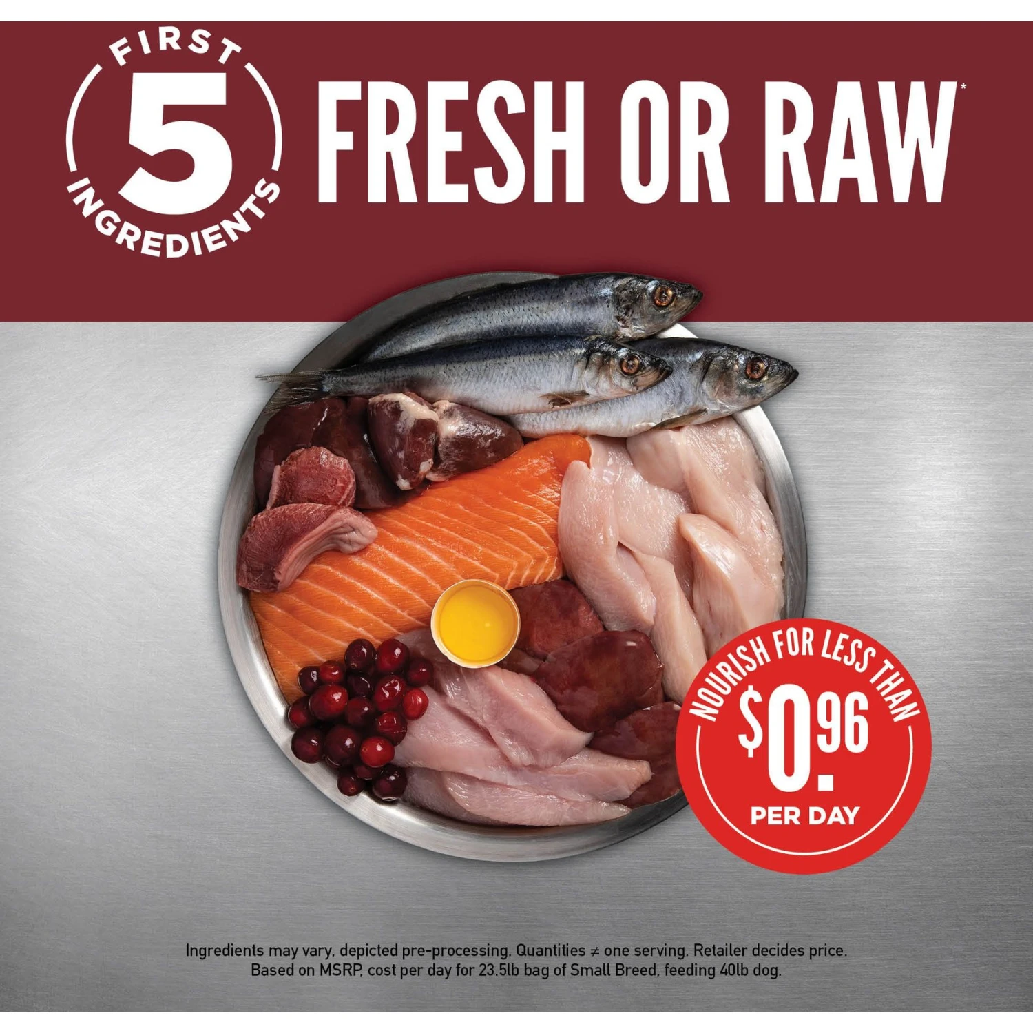 - Formulated with the nutrition small dogs need, plus WholePrey inclusions like nourishing organs that mimic dogs’ ancestral diets.