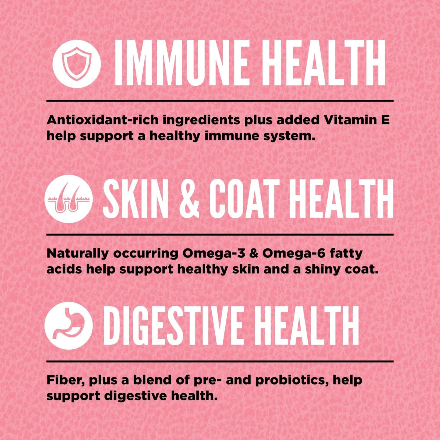 - Grain-free formula contains no added soy, corn, wheat or tapioca.