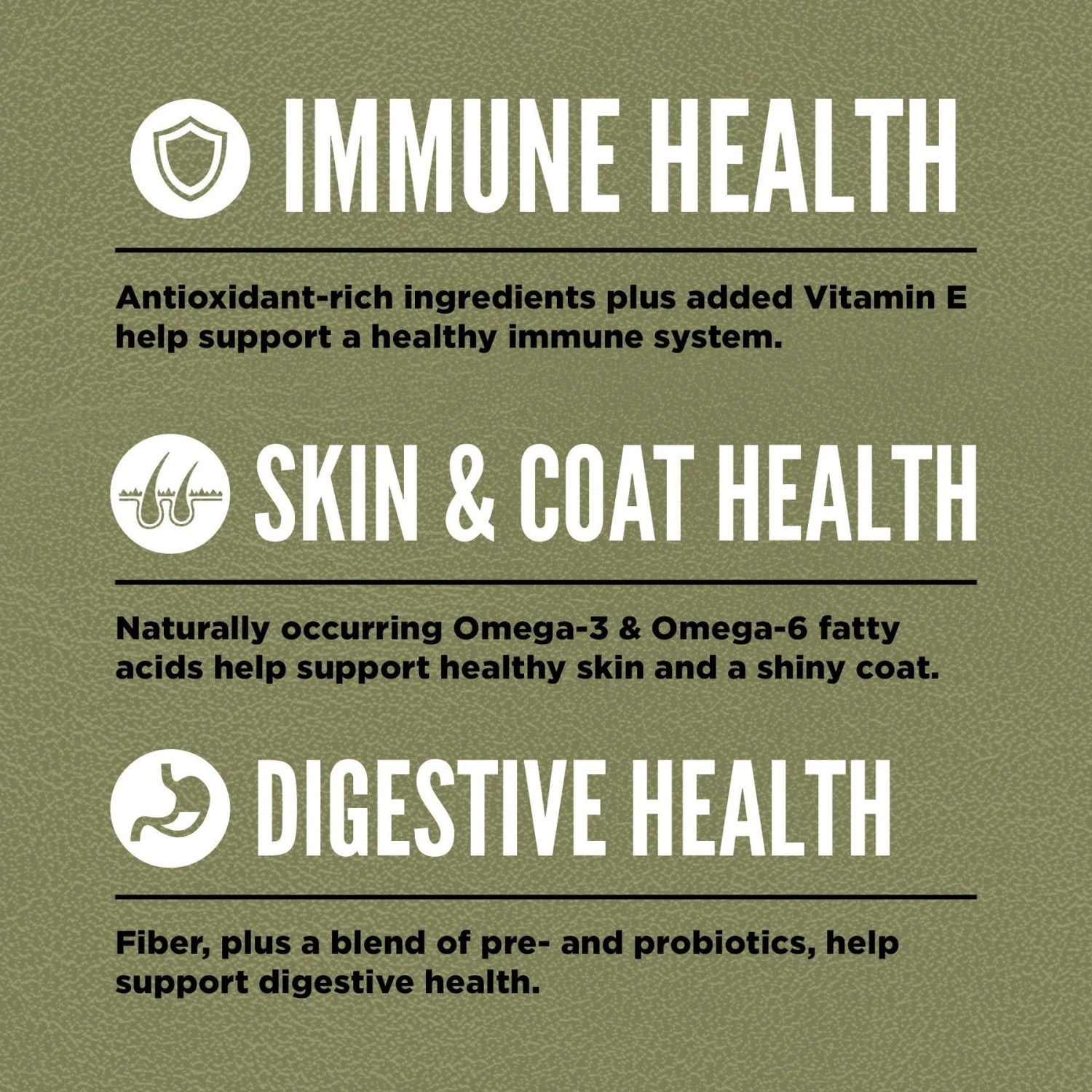 - This grain-free dry dog food is made with up to 85% animal protein and WholePrey inclusions like organs and bones.