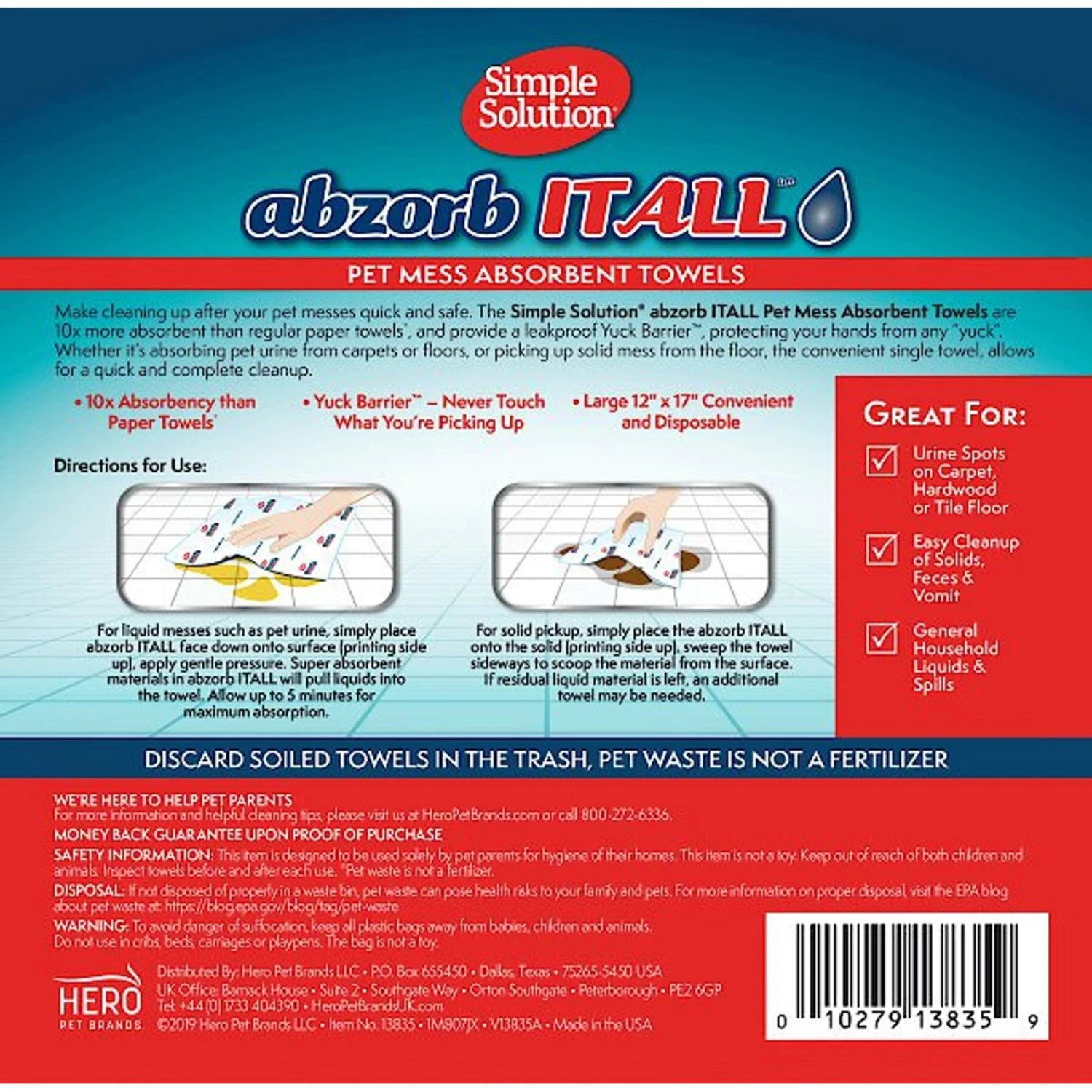 Be the first to review “Simple Solution AbzorbITALL Pet Stain & Odor Absorbent Towels” Cancel reply