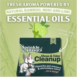 - Essential oil aroma—the dog and feline safe blend of bamboo, mint, and lime essential oils deodorizes any remaining pet mess odors.