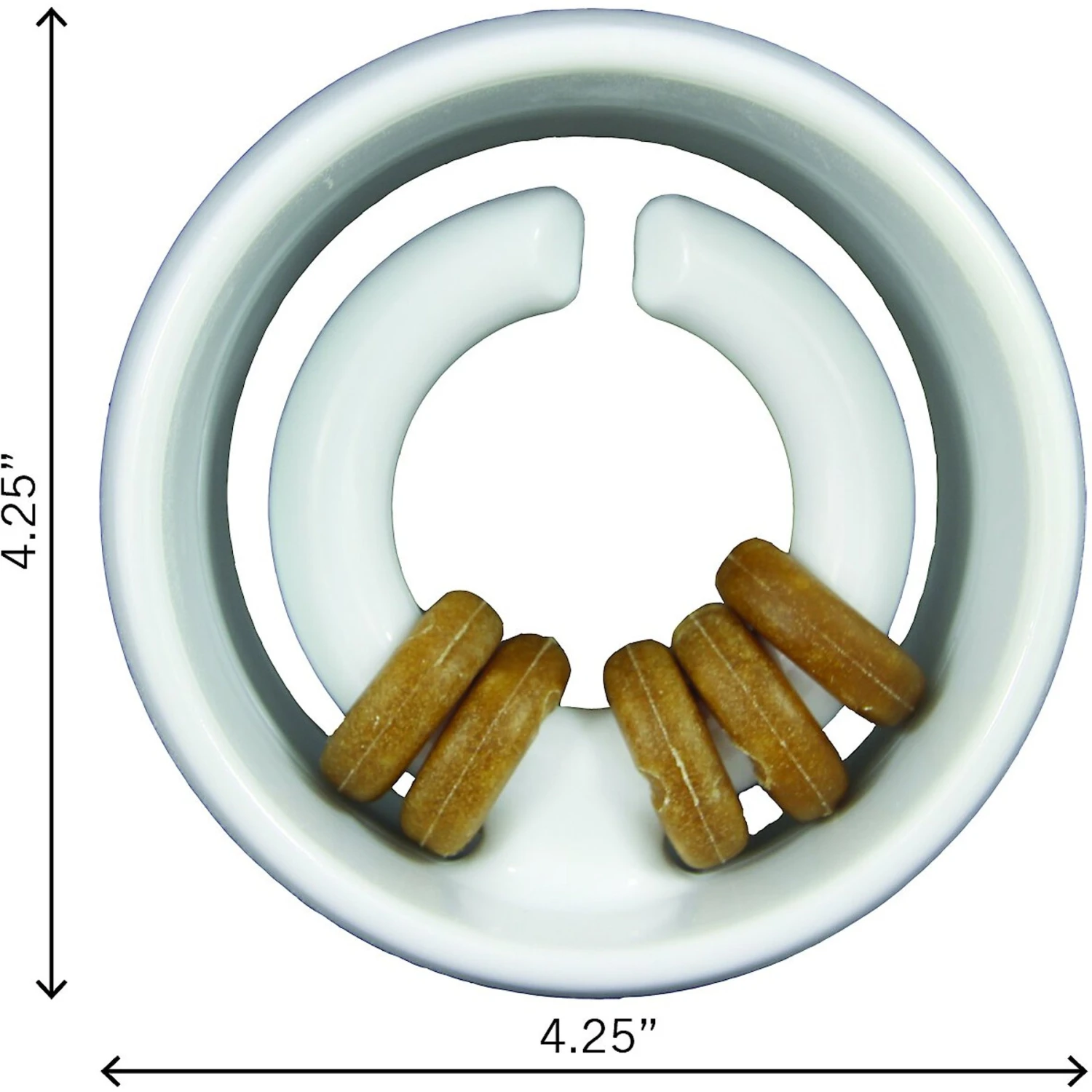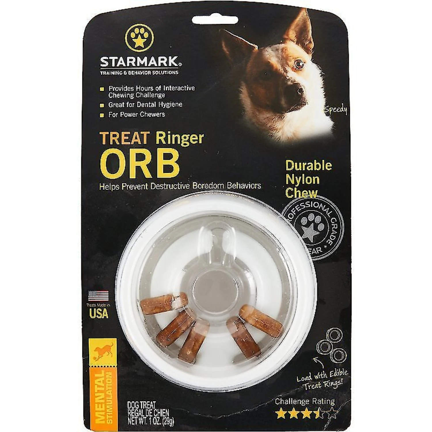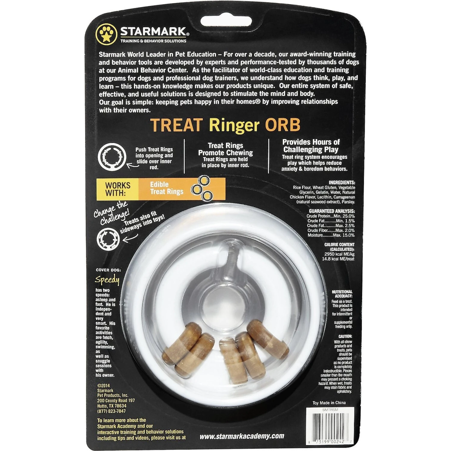 - Both the Ringer Horseshoe and Ringer Orb hold Starmark Edible Rings that fit onto the inner loop of the toy.