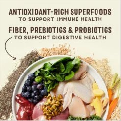 - Antioxidant-rich superfoods, prebiotics, probiotics and a unique blend of proteins all combine to support your dog’s immune and digestive health.