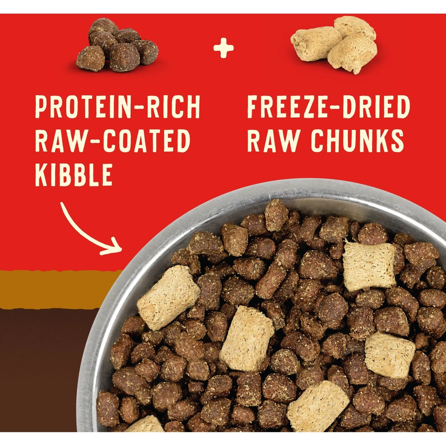 - Freeze-dried raw meat coats every delectable bite with added raw chunks.