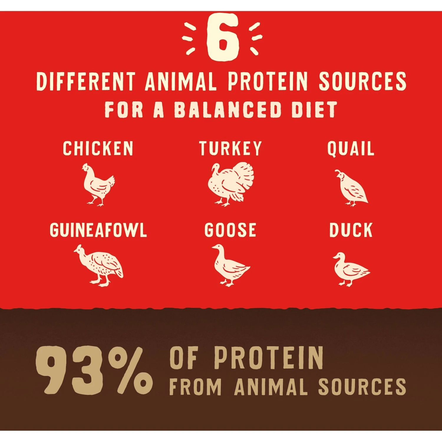 - Packed full of protein with chicken, turkey, quail, guineafowl, goose, and duck.