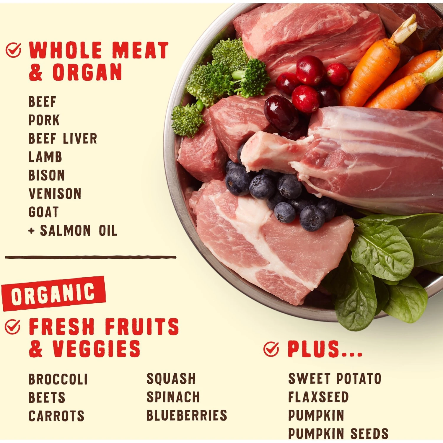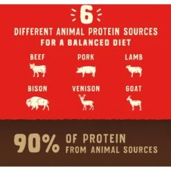 - Packed full of protein with beef, pork, lamb, bison, venison, and goat.