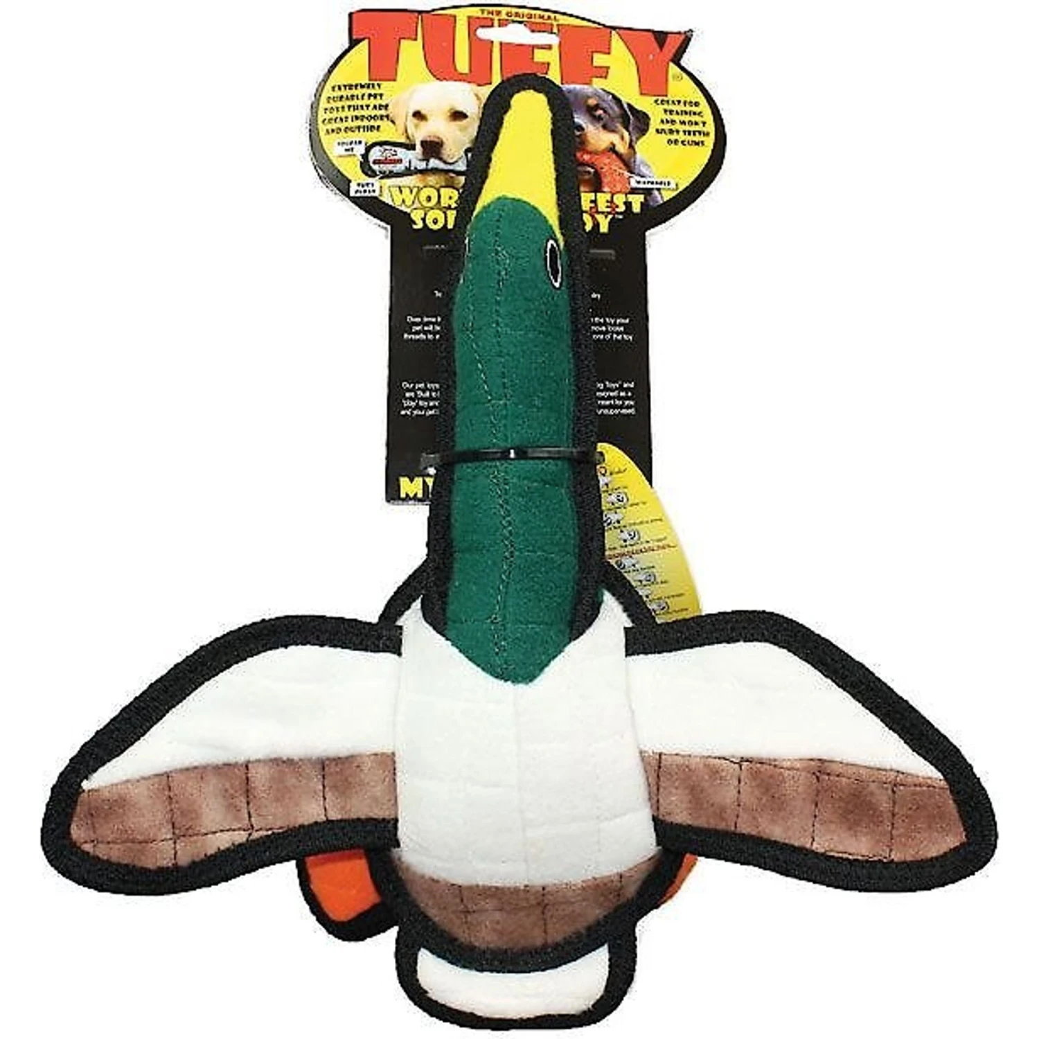 - The smaller version of Tuffy’s Barnyard Duck Dog Toy, making it great for small and medium paw-tners.