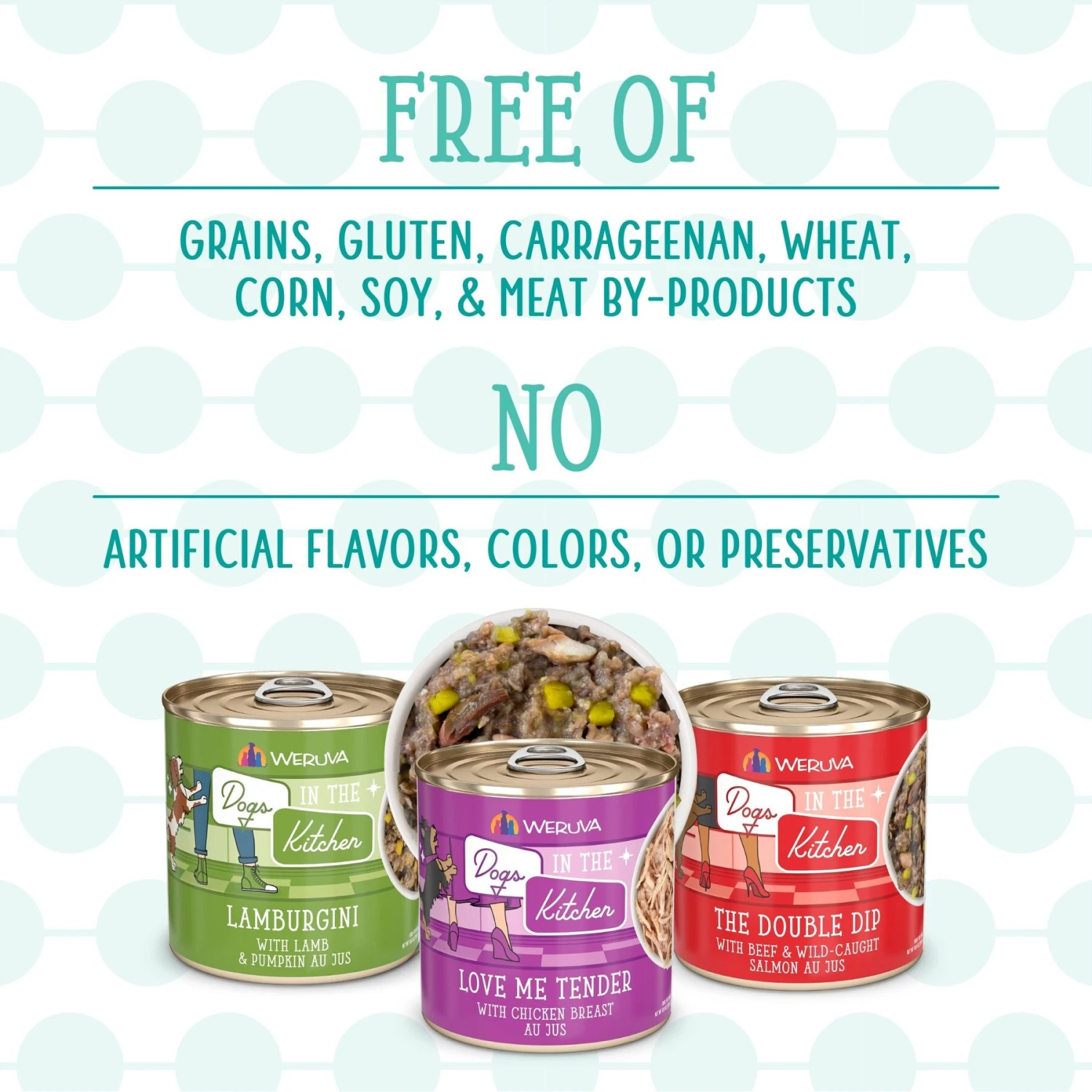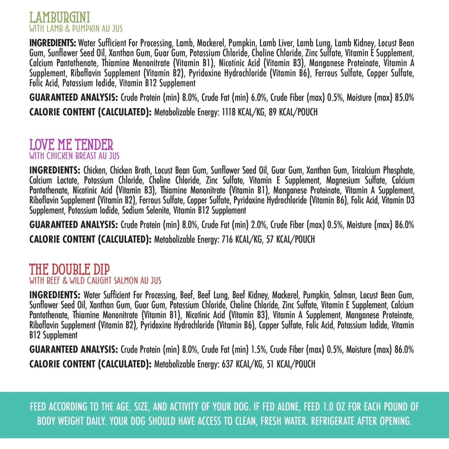 - Paw-licking palatability from real au jus is great for picky eaters, with zero grains, gluten or carrageenan.